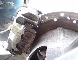 リヤブレーキのシューを動かすロッドが錆びてスムーズに 動かなくなり、ブレーキを掛けた時にブレーキを放しても 戻らなくなり、ブレーキが掛りっ放しになった。 徐々に症状が出て急にはならないので気がついた時には手遅れに。 |